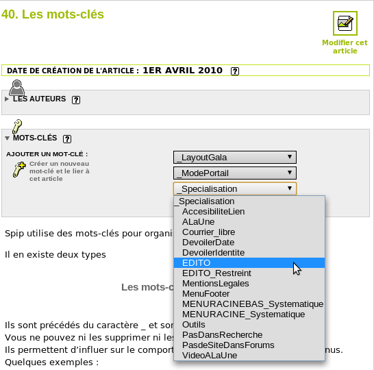 Associer des documents à un article